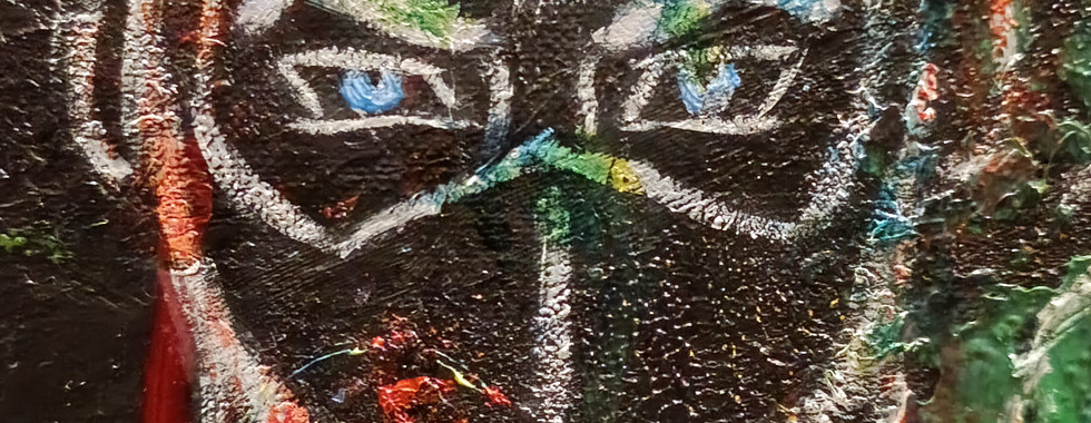 Son processus créatif repose sur une technique minutieuse. Sur des toiles de formats variés, il travaille principalement à l’acrylique, utilisant le sable ou des amas de peinture pour créer des effets de matières uniques. Après avoir dessiné les contours à la craie blanche, il peint directement les personnages sans croquis préalable, renforçant l’effet spontané et vivant de ses compositions.